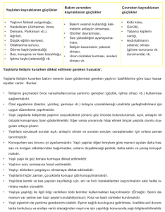 bozukluğu, bitkinlik, gibi sorunlarla karşılaşılmaktadır. Bu durum yaşlının bireysel özellikleri, cinsiyeti,
