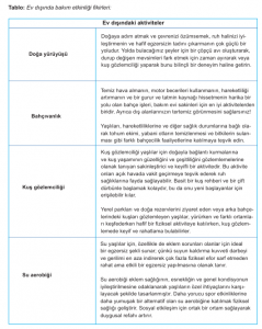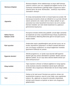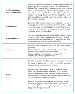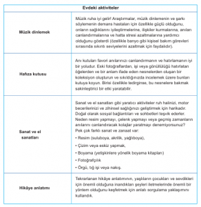 Tablo: Evde bakım etkinliği fikirleri