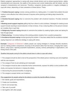 and health status of the elderly person, which make it easier for family members and caregivers to cope with stress, lead to different effects.