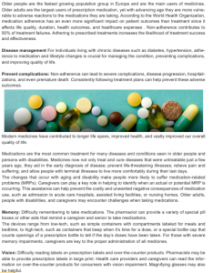medication use . For seniors with cognitive impairments, caregivers play a vital role in recognizing changes